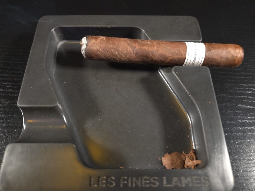 The middle third begins with notes of caramel, chocolate, coffee, and a hint of wood. The retrohale has baking spices and white pepper. The intensity seems to have let up a bit, but the profile remains medium-full. Wood and sweet cream on the finish. The burn line has evened up and the ash remains compact and gorgeous. The smoke remains plentiful and satisfying, while becoming more creamy. Subtle notes of earth, wood, and butter continue through the middle third, complimenting the sweeter notes dominating. The Boris Karloff robusto has a minerality that runs through it adding depth. Still nuanced, still spicy.