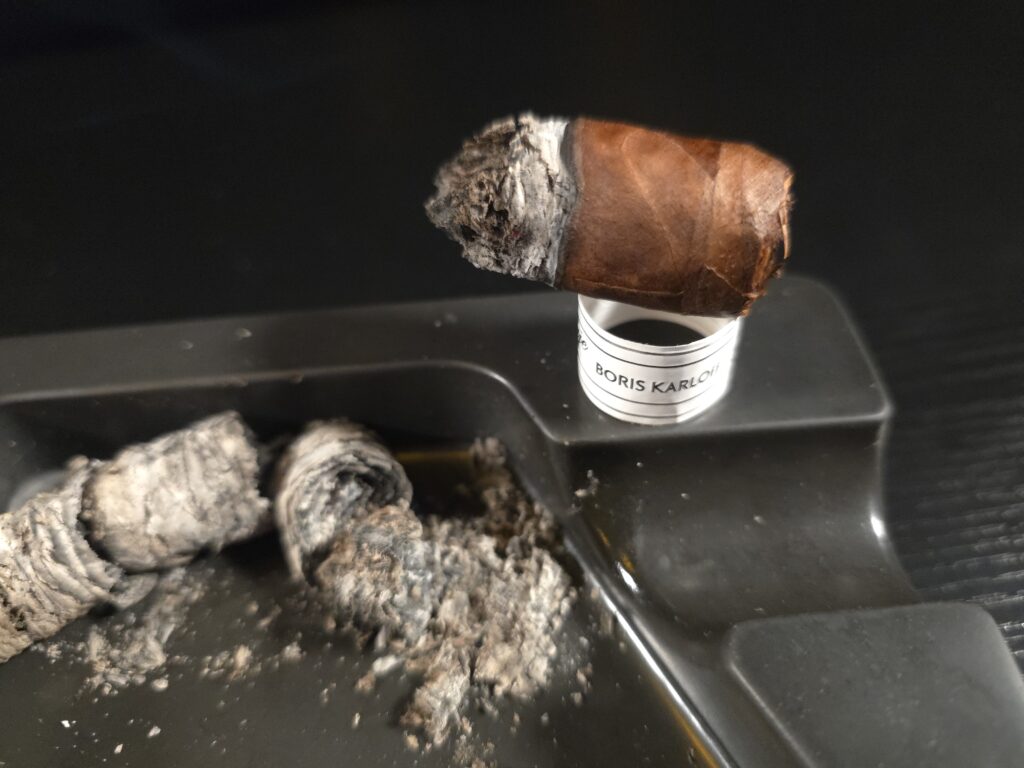 The final third starts off with notes of coffee, charred wood, and baking spices dominating the profile. A mushroom funk permeates the flavors now, in lieu of butter. Red pepper returns to the profile, flanked by that salty minerality. Black pepper rules the retrohale once more. The sweeter notes play hide and seek as the earthiness of the Boris Karloff robusto is in full effect. Earth and espresso battle it out for supremacy as wood and spices playfully compliment them. Butter returns, as does a note of dry cocoa powder. Cayenne pepper, butter, dry peanuts, and charred wood on the finish. The ash has a few small, stray flakes while it refuses to hang on in two of three cigars smoked for this review. Butter, cream, wood, pepper, and chocolate all come through in big ways near the end.