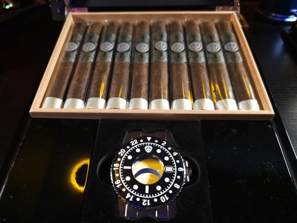 The first question I know I’ going to be asked is, “Is it worth $30.00?” No. Is it a very good cigar? Yes. Did the price point work against it? Probably. The burn was just always wonky…like a roller coaster that you constantly just wanted off of, but never slowed down. The American broadleaf wrapper just didn’t deliver on the overall feel that the Dark Time conveyed with its presentation. Now that my critiques are out of the way… The only question you should ask yourself is, “Is this worth smoking?” Yes. Without a doubt, yes! It’s a very good cigar. The flavors are there in balanced proportions. They flow together nicely and left me, honestly, wanting to smoke another. The cool Rolex inspired cutter didn’t hurt, either.