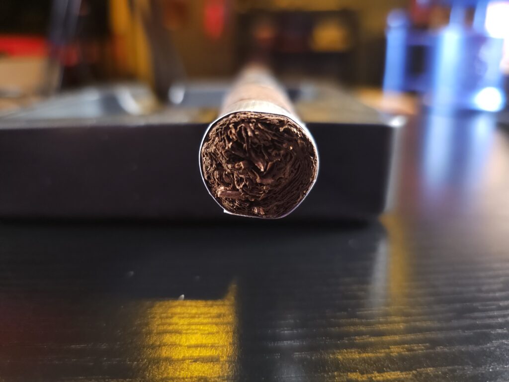 The dark broadleaf wrapper has notes of sweet tobacco, hay, fruit, and a musty note that I can’t quite place. There might also be a hint of wood. Honestly, the notes are kind of difficult to find on the wrapper. The foot gives up similar notes of fruit, barnyard, tobacco, and earth.