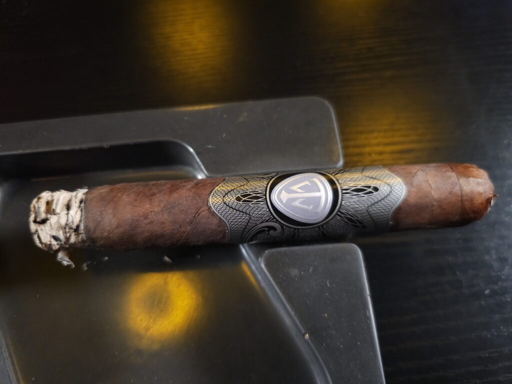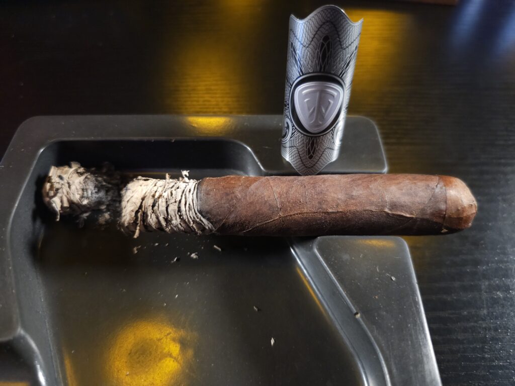 The final third begins with notes of charred wood, coffee, butter, green pepper, and a savory umami. It’s almost a bit beefy. Red pepper scratches at the back of my throat. Leather and wood linger on my palate. Big notes of black pepper on the retrohale. The burn continues to be uneven. Espresso and wood dominate with dark chocolate, earth, and pepper drifting in and out. The flavors are not all in your face, they ebb and flow and are almost elegant. Mocha, red pepper, leather, earth, salted butter are all wrapped in the black pepper from the retrohale. A touch of citrus…or maybe fruit…also places hide and seek on my palate. There’s a buttered popcorn now with earth and pepper and bit of spice that starts to come through. The Dark Time ends with some great full bodied flavors of chocolate, espresso, wood, and pepper.