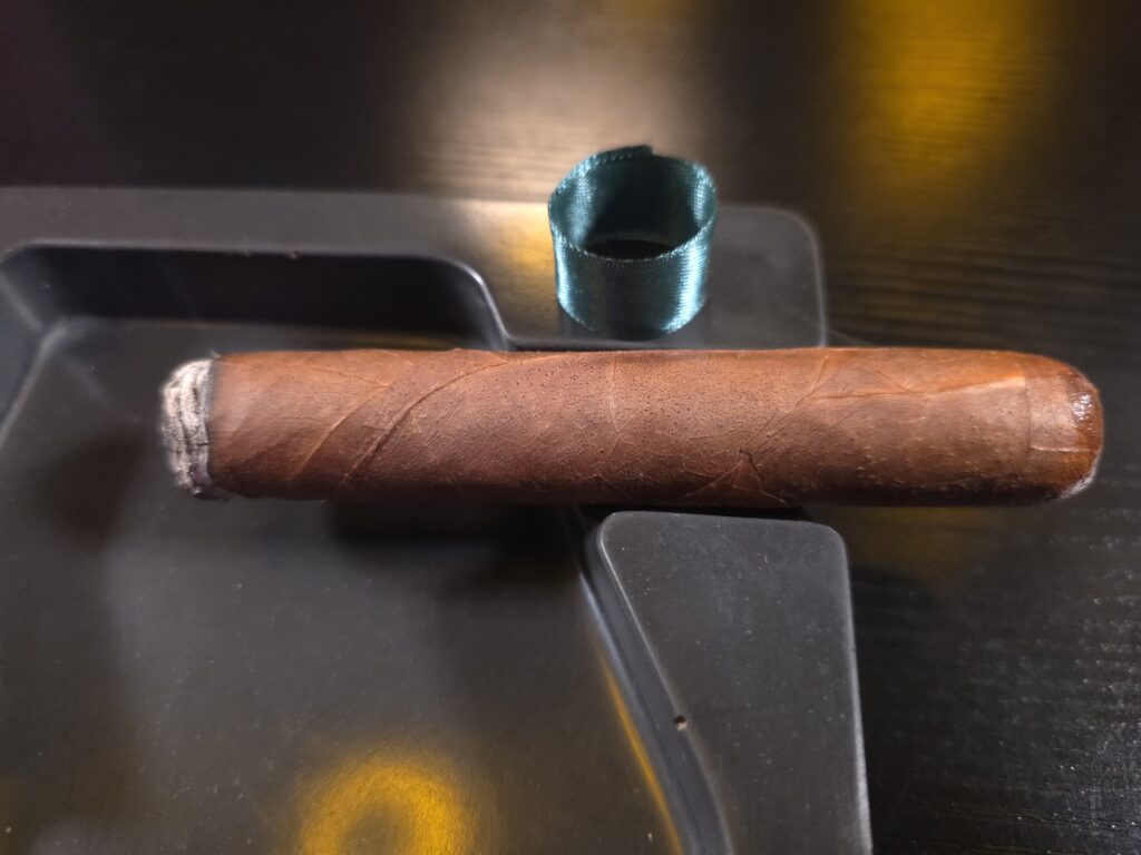 The Ecuadorian Habano wrapper is a beautiful shade of dark brown. It is toothy, with a few visible veins, and almost smooth. There are no noticeable hard or soft spots. The Verdigris feels firm, with just the right amount of give. The cap appears to be expertly applied. The Verdigris is a gorgeous looking cigar.
