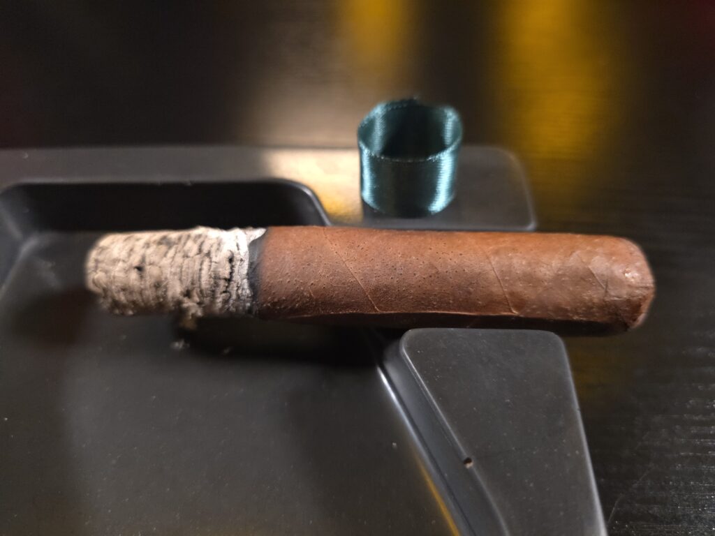 The cold draw offers almost perfect resistance from each cigar smoked for this review. Notes of fruit, wood, and herbs come through. Taking a few more draws reveals notes of chocolate and caramel. There’s a floral quality there, too.